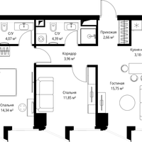 2-к. квартира, 60 м²