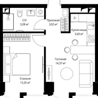 1-к. квартира, 39 м²