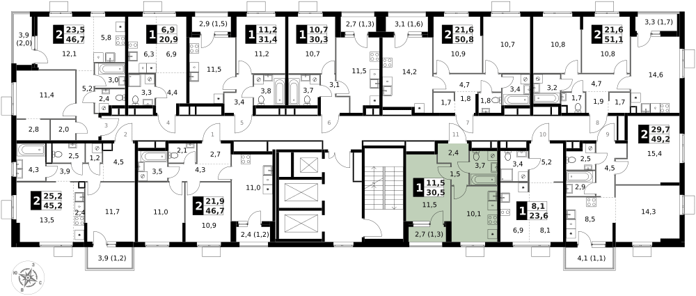 11 м²