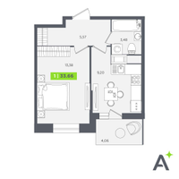 1-к. квартира, 33 м²