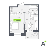 1-к. квартира, 33 м²