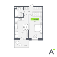 Студия, 42 м²