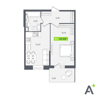 Студия, 42 м²