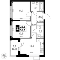 2-к. квартира, 52 м²