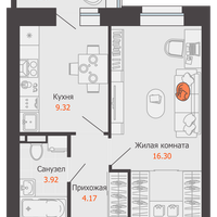 1-к. квартира, 35 м²