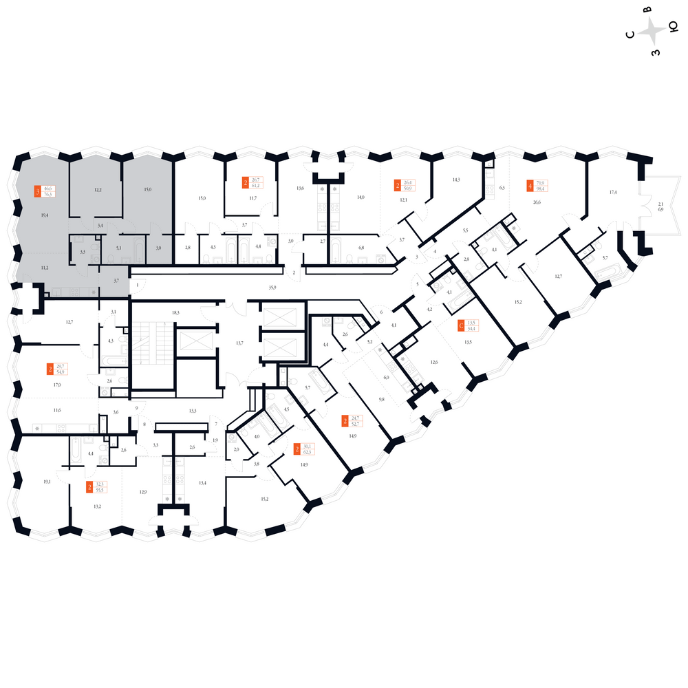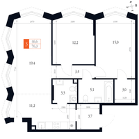 3-к. квартира, 76 м²