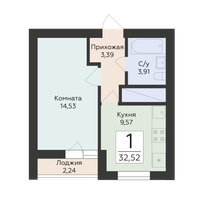 1-к. квартира, 32 м²