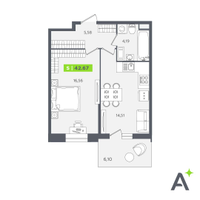 Студия, 42 м²