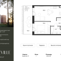 1-к. квартира, 42 м²
