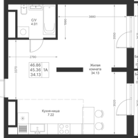 Студия, 46 м²