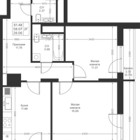 2-к. квартира, 61 м²