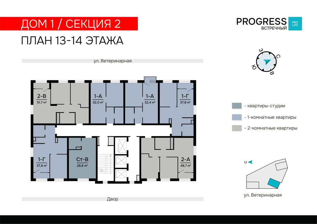 2-к. квартира, 51 м²
