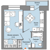 1-к. квартира, 34 м²