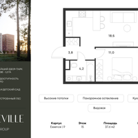 1-к. квартира, 37 м²