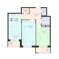 2-к. квартира, 60 м²