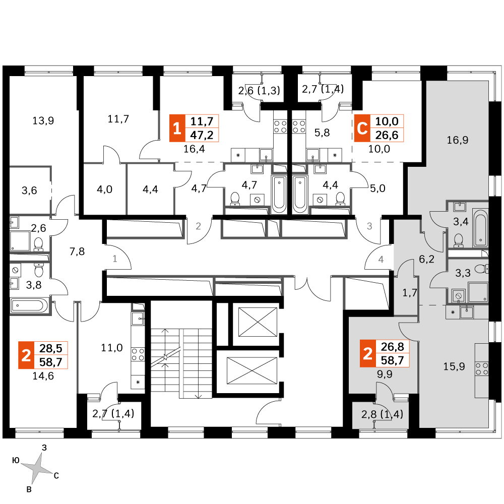 58 м²