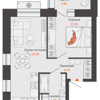 2-к. квартира, 41 м²