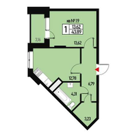 1-к. квартира, 40 м²
