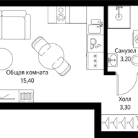 Студия, 22 м²