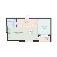 2-к. квартира, 53 м²