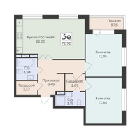 3-к. квартира, 72 м²