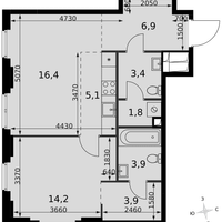 2-к. квартира, 55 м²