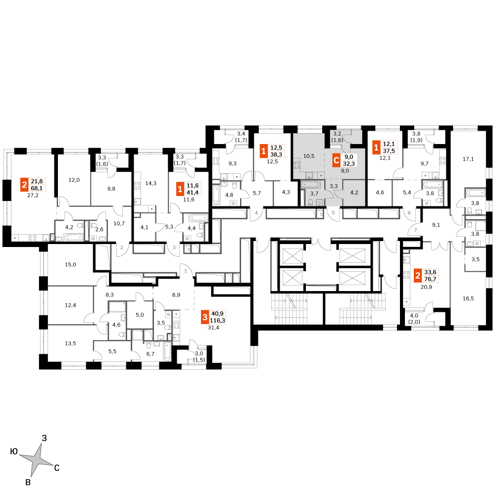 32 м²