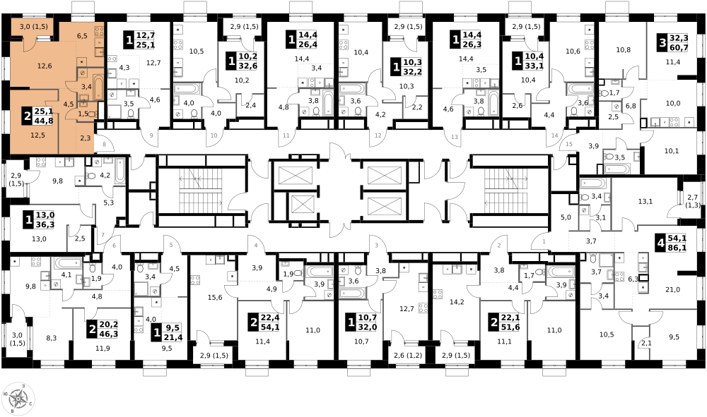 44 м²