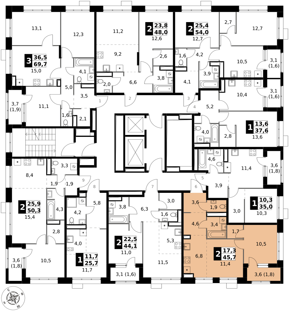 45 м²