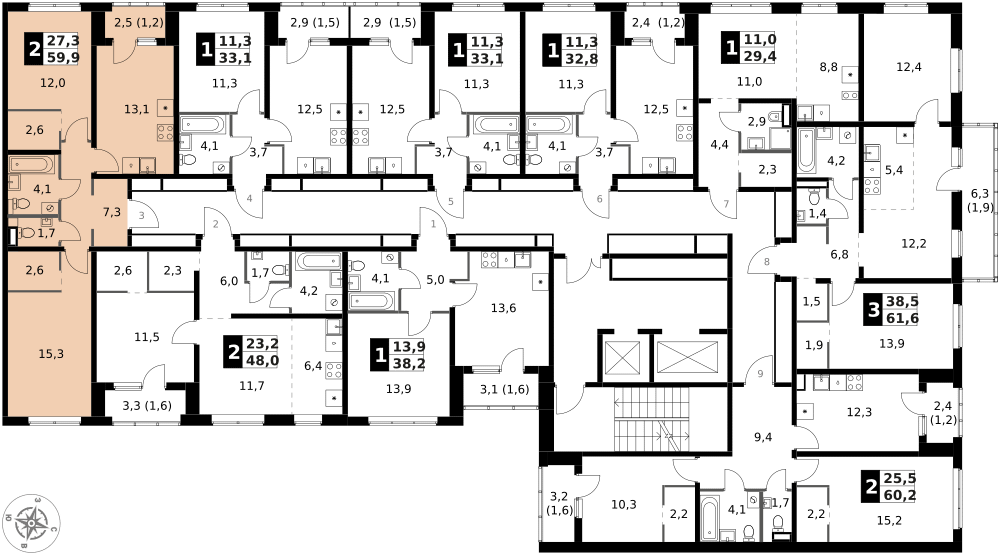 2-к. квартира, 59 м²