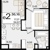 Студия, 36 м²