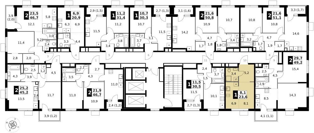 23 м²