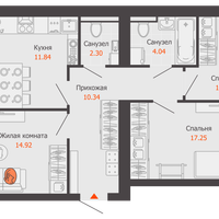 3-к. квартира, 75 м²
