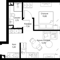 1-к. квартира, 34 м²