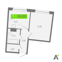 1-к. квартира, 34 м²