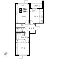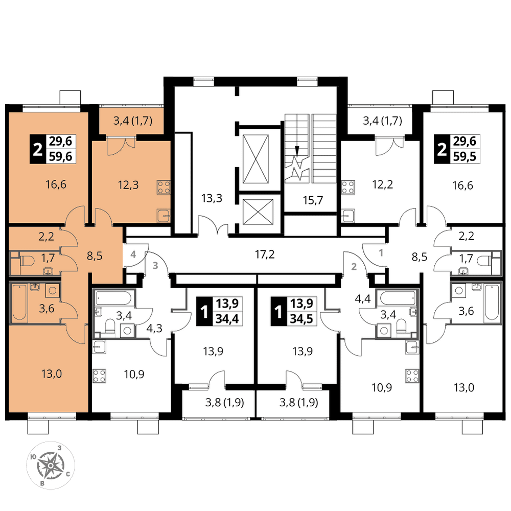 2-к. квартира, 59 м²