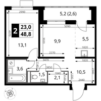 2-к. квартира, 48 м²