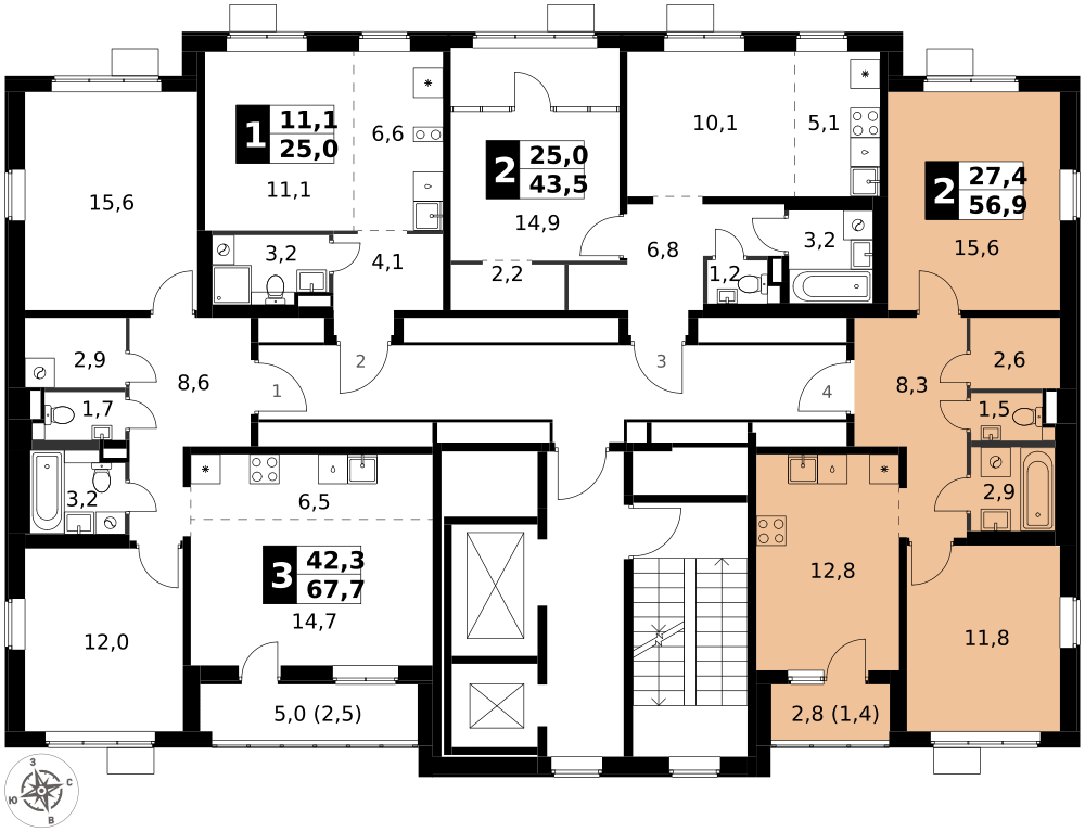 56 м²
