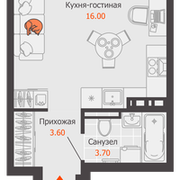 1-к. квартира, 23 м²