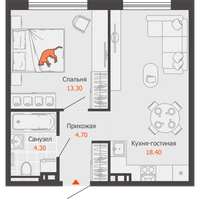 2-к. квартира, 41 м²