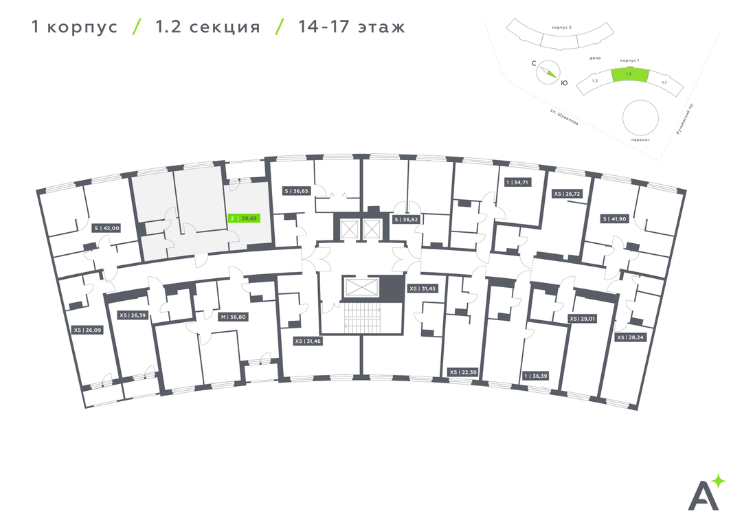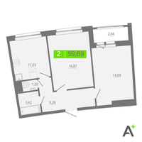 2-к. квартира, 59 м²