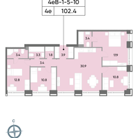 4-к. квартира, 103 м²
