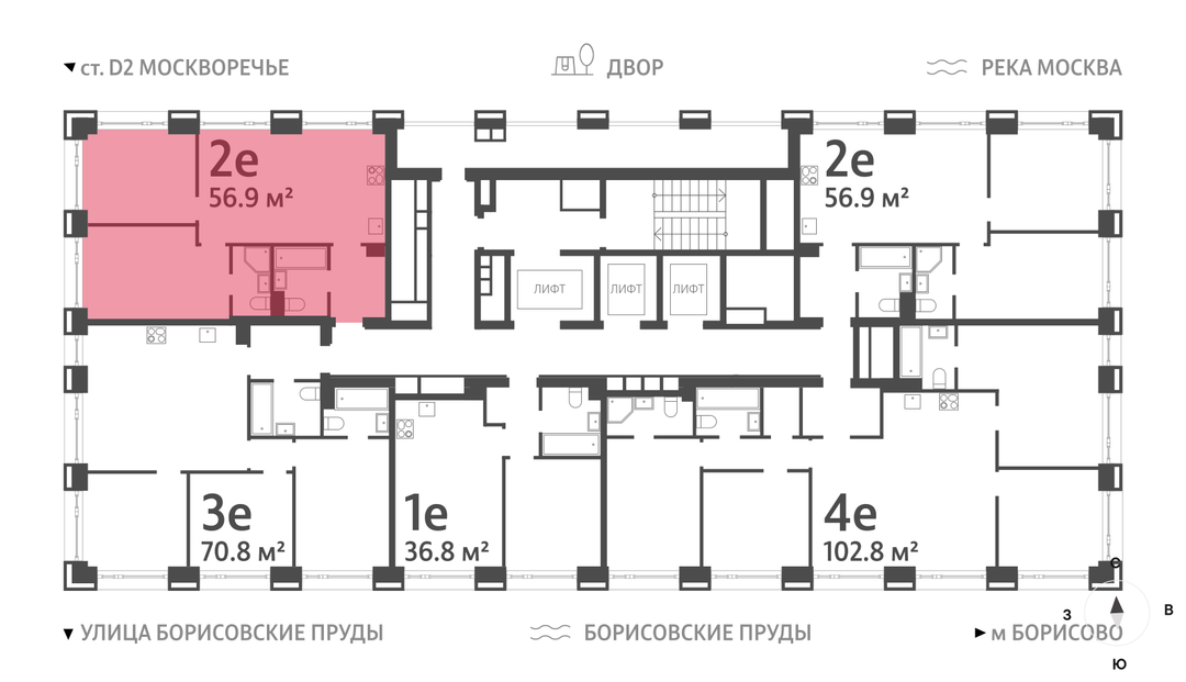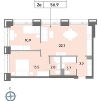 2-к. квартира, 57 м²