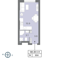 Студия, 22 м²