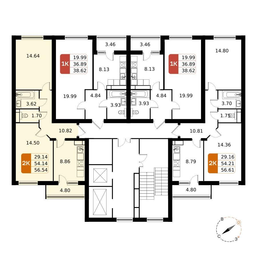 2-к. квартира, 56 м²