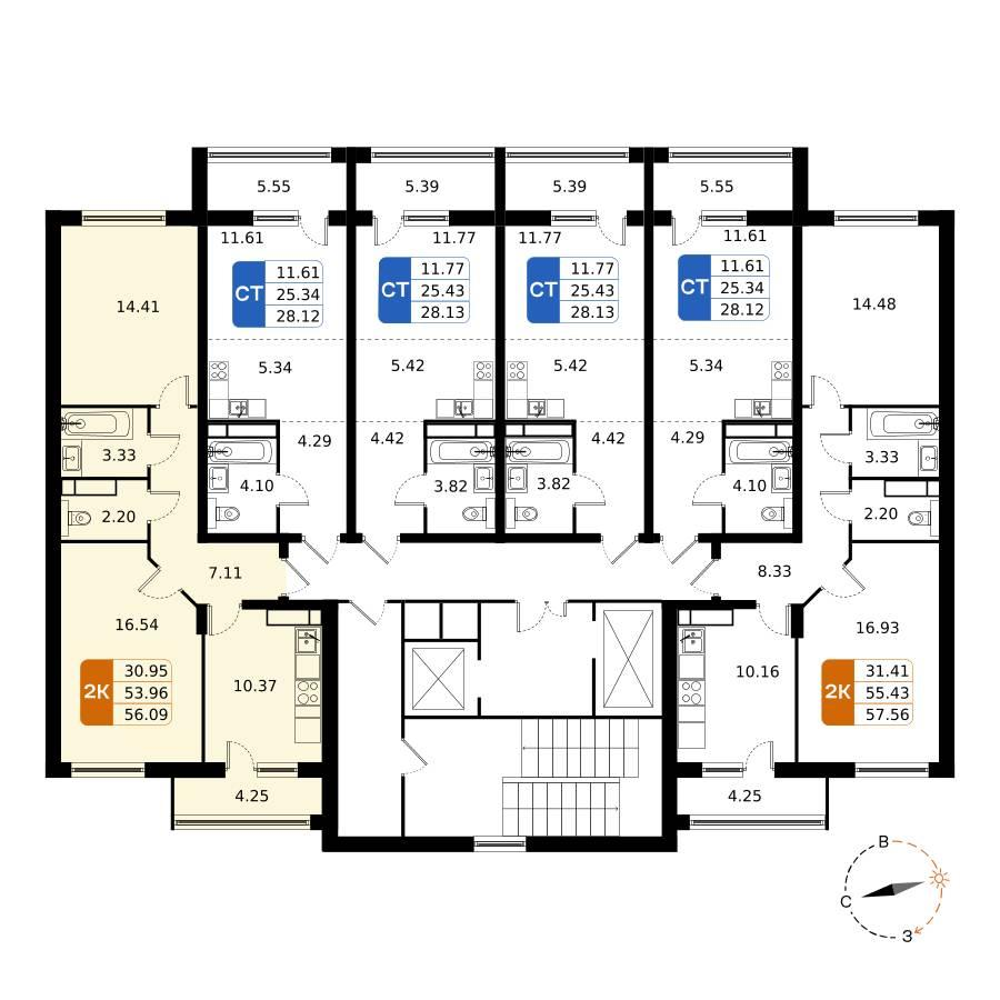 2-к. квартира, 56 м²
