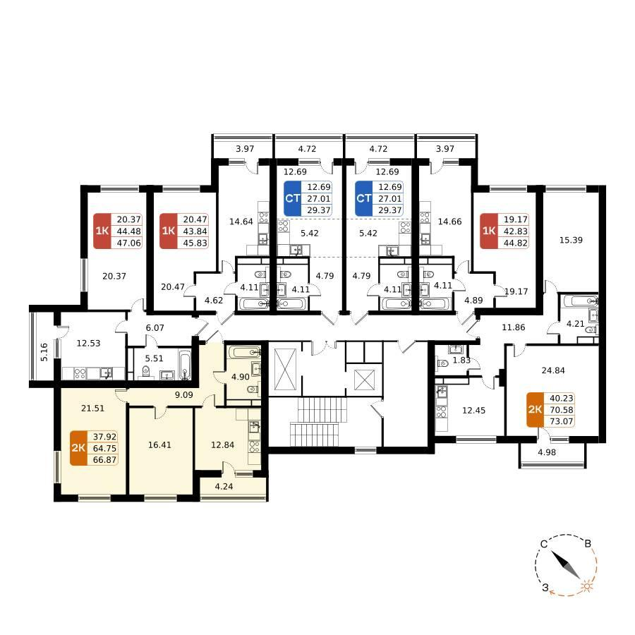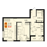 2-к. квартира, 66 м²