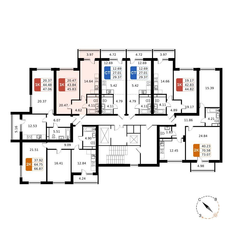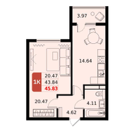 1-к. квартира, 45 м²
