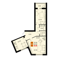 2-к. квартира, 63 м²