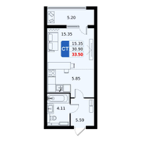 Студия, 33 м²